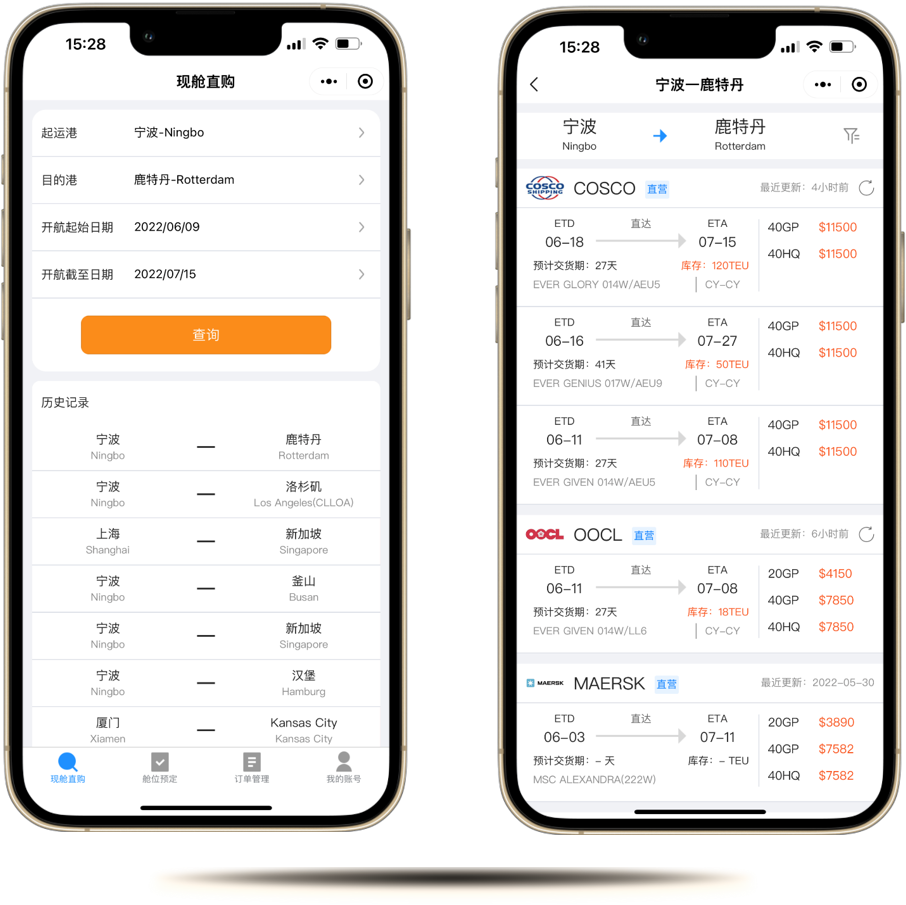 多家船公司线上比价订舱